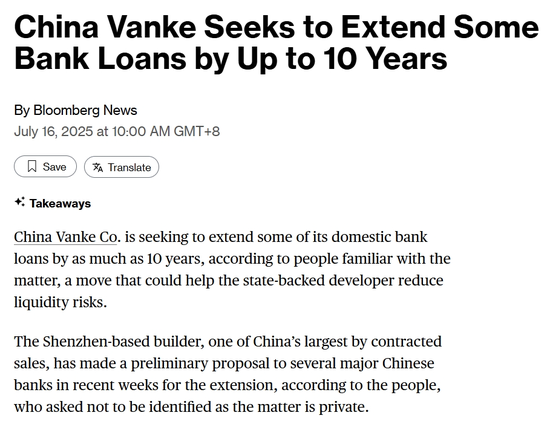 两天前才预告今年上半年净亏损至少100亿元,万科(000002.SZ,2202.HK)便被曝正寻求将部分国内银行贷款展期最长达10年。